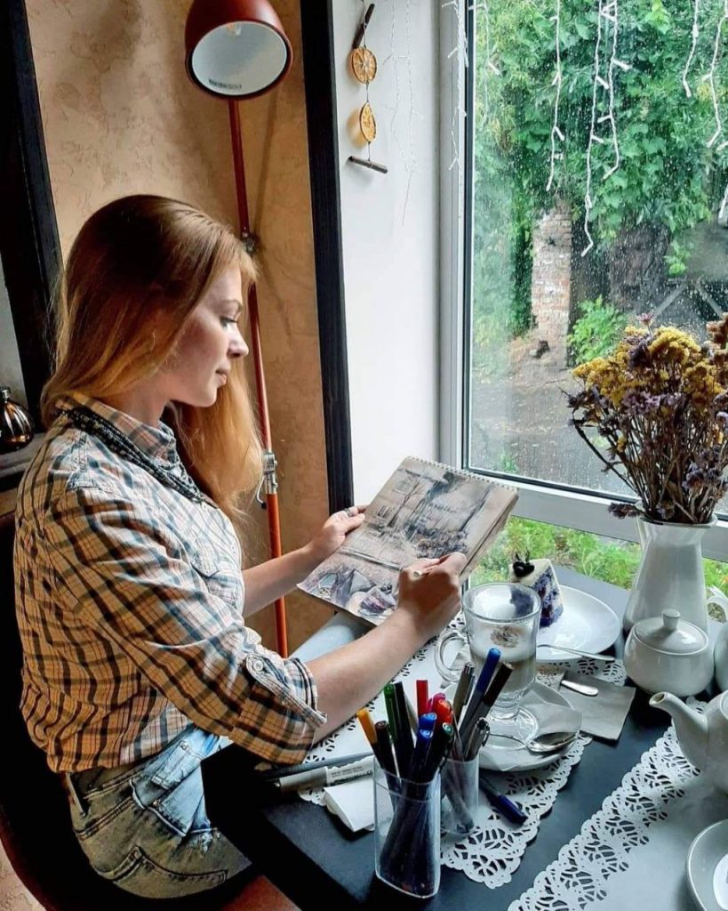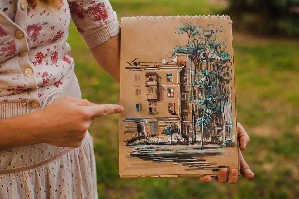 Під час нашої подорожі ми будемо робити легкі крафтові замальовки міста разом із професійною художницею Катею Тарлінською.